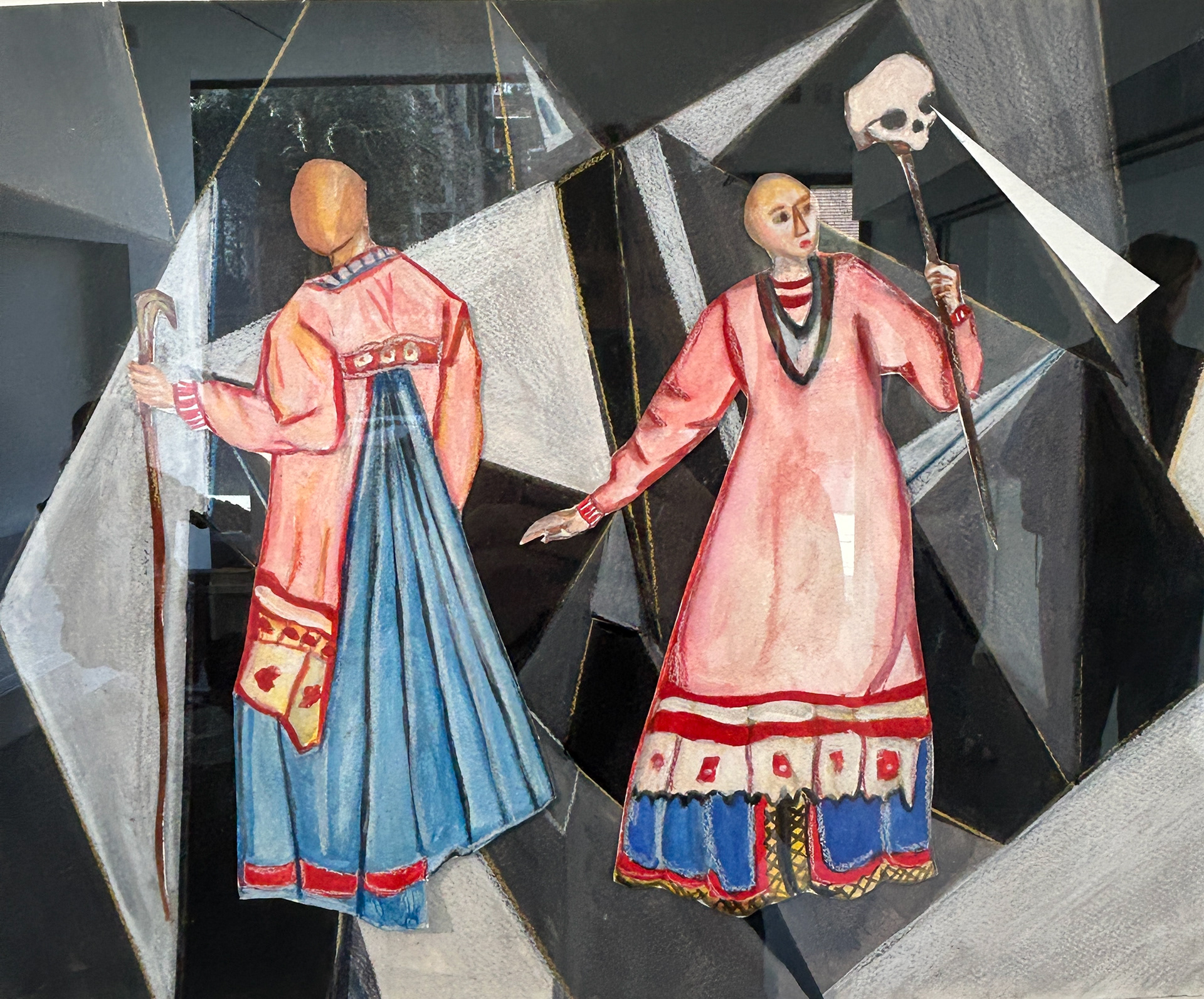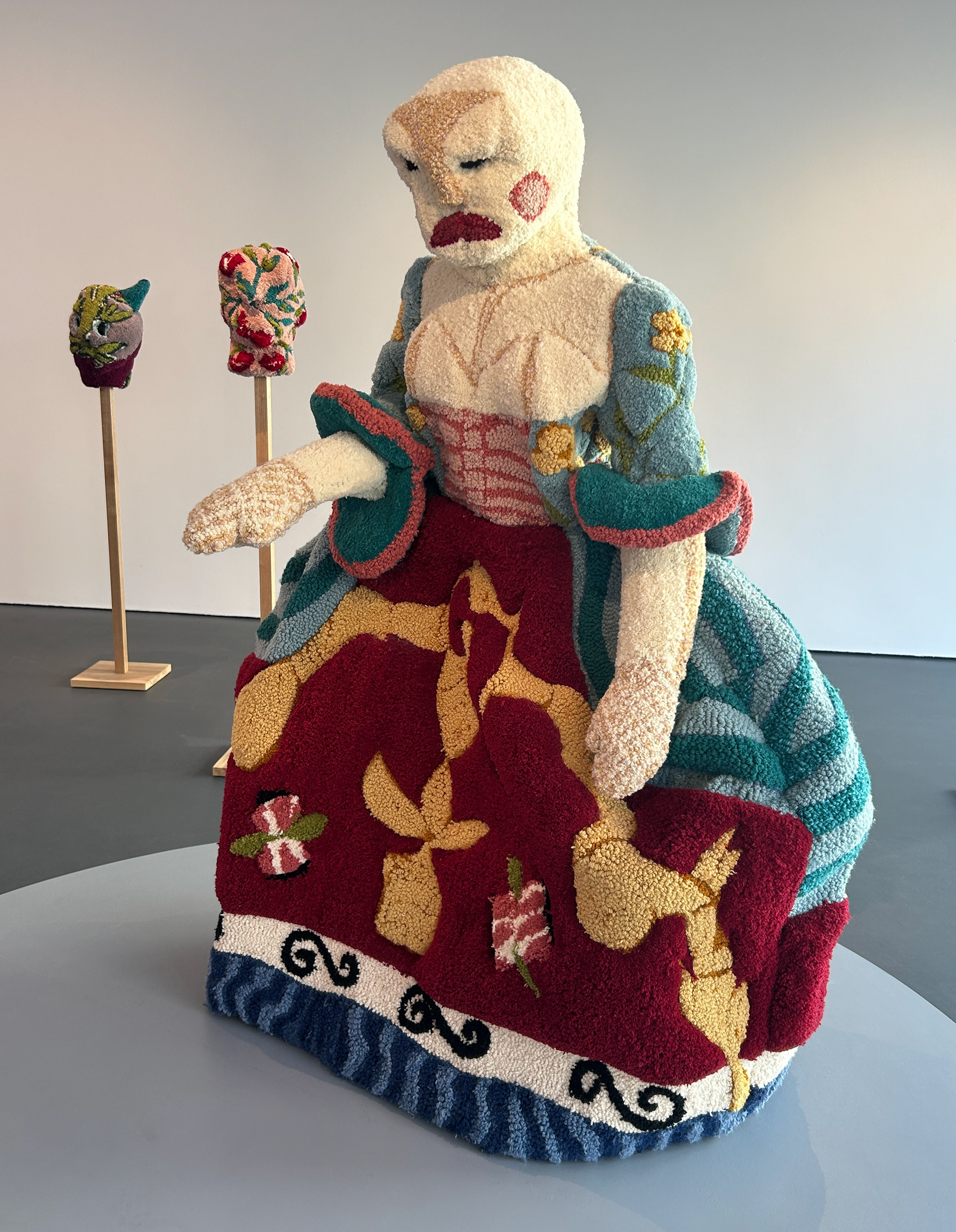 The exhibition presents the work of Anna Perach, featuring a live performance of two large-scale feminine sculptures: one brought to life by a live performer, while the other operates as a clockwork automaton.