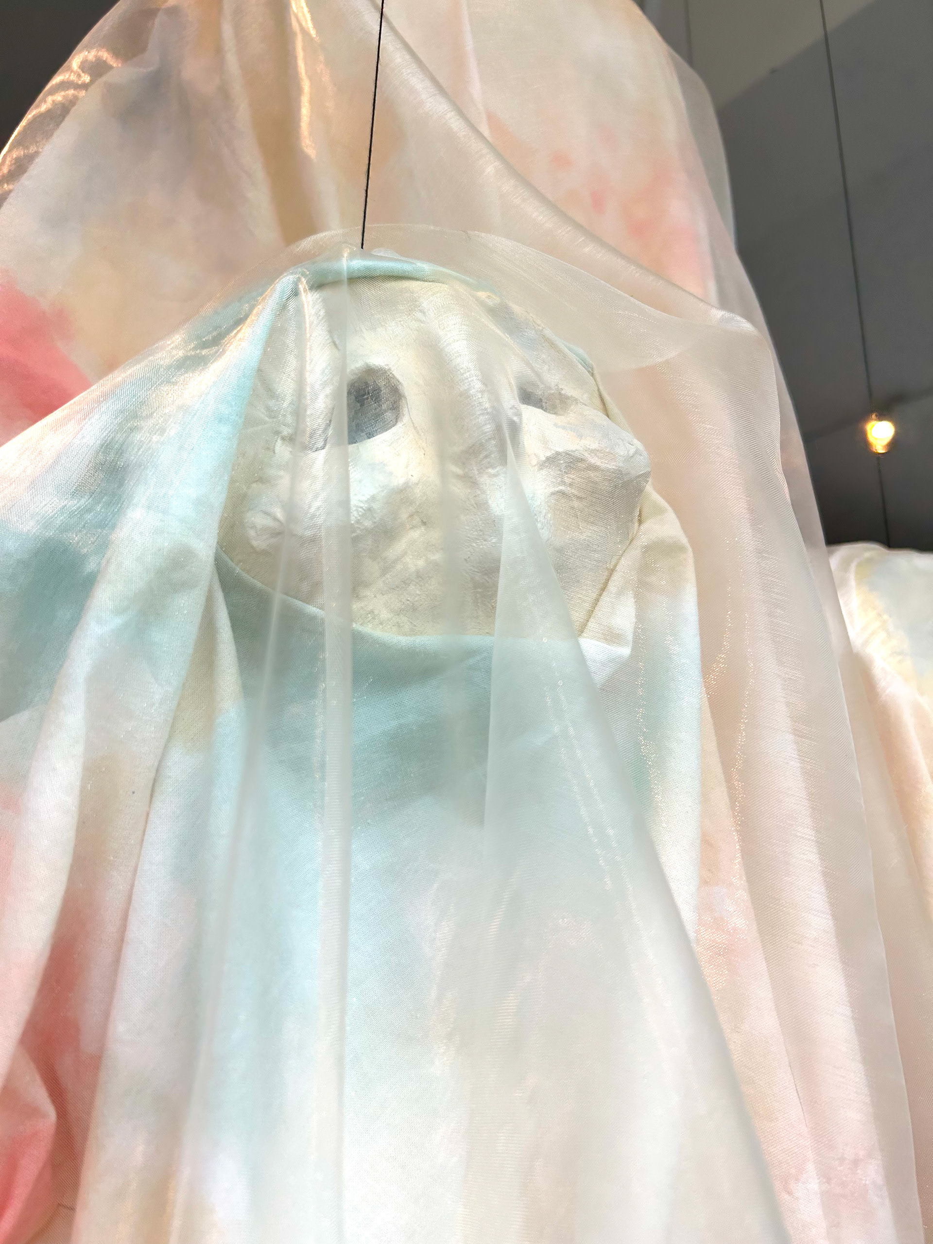 Its size shifts the usual relationship between puppet and puppeteer, suggesting autonomy rather than control. The visible construction highlights both its materiality and its symbolic role, prompting viewers to consider where a puppet’s “life” is located within its body, its manipulation or the spirit it is imagined to possess.